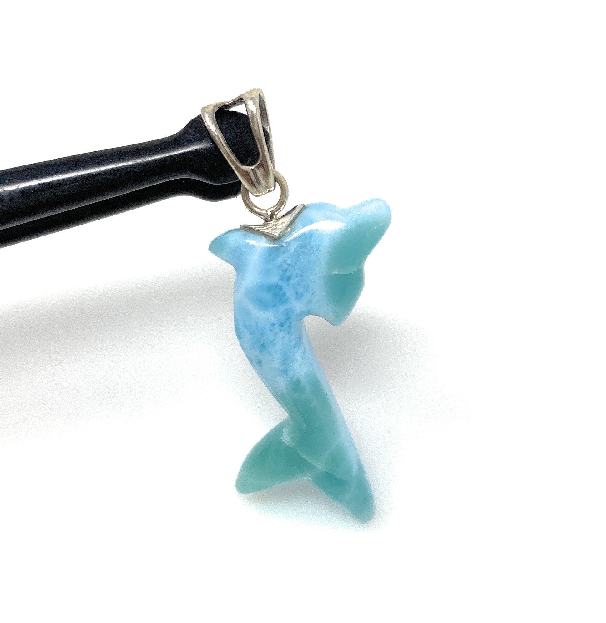 10g Larimar Dolphin Pendant, Reversible Larimar Pendant, Bohemian Jewelry, Dominican Republic Larimar Pendant