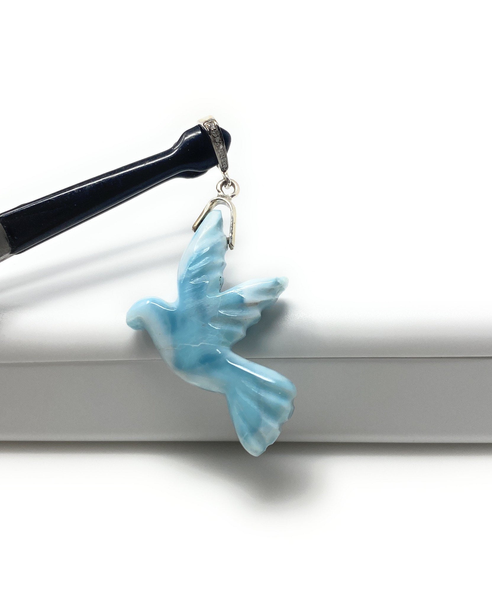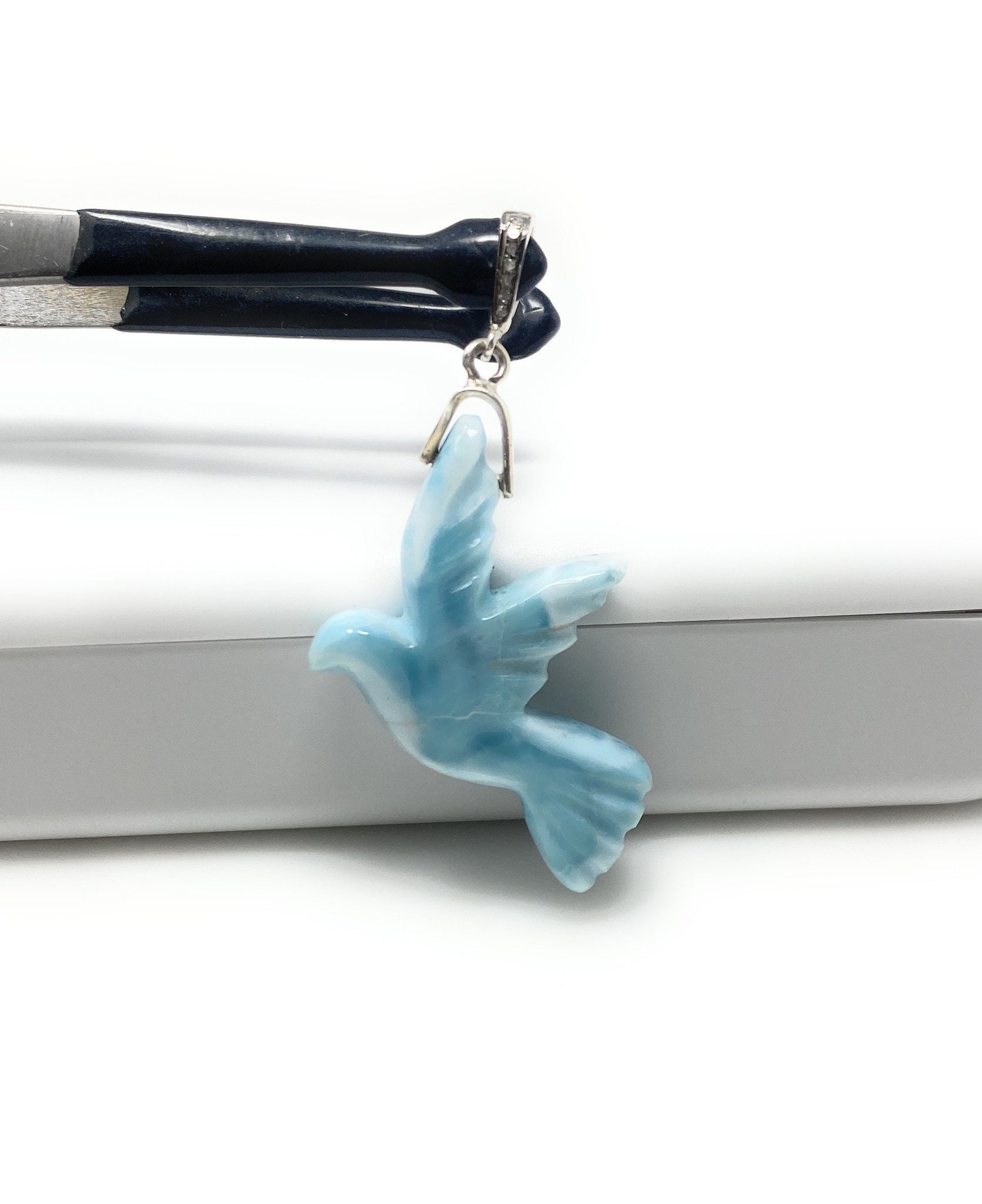 10g Rare Large Larimar Bird Pave Diamond Pendant, Silver Bohemian Jewelry, Dominican Republic Hand Carved Larimar Bird Pendant