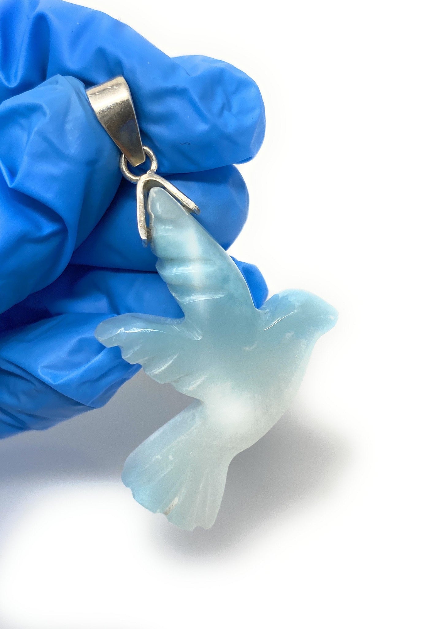 10g Rare Large Larimar Bird Pendant, Silver Bohemian Jewelry, Dominican Republic Larimar Pendant