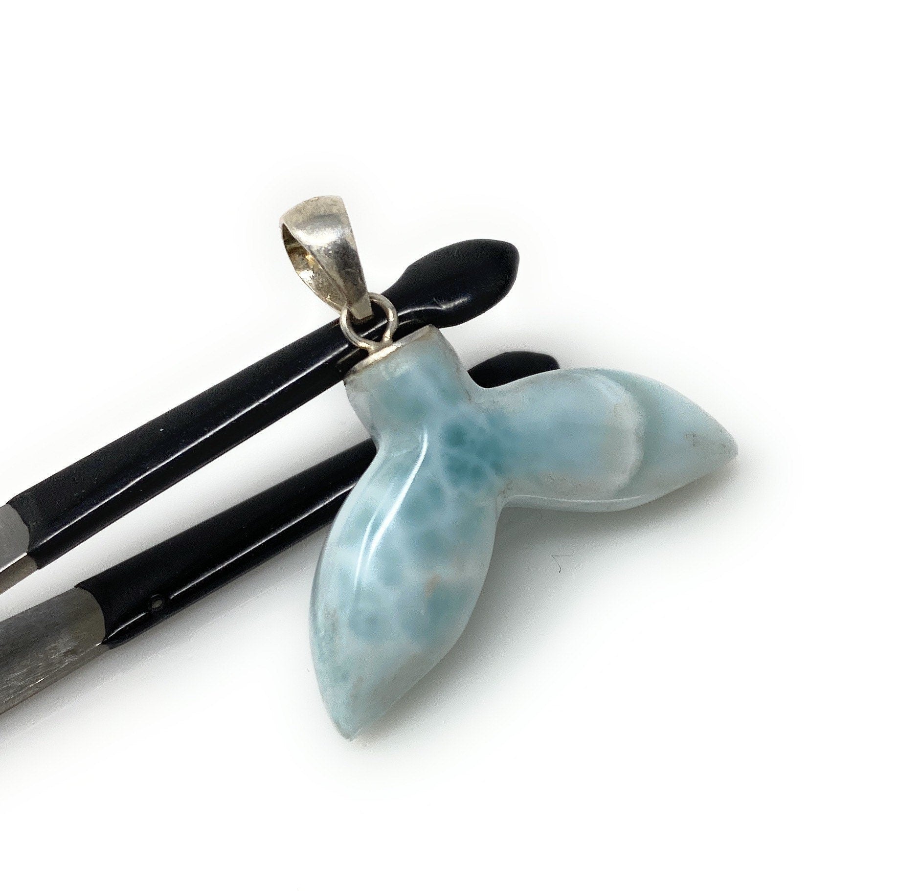 12g Larimar Mermaid Tail Pendant, Sterling Silver Pendant, Bohemian Jewelry, Larimar Whale Tail Pendant