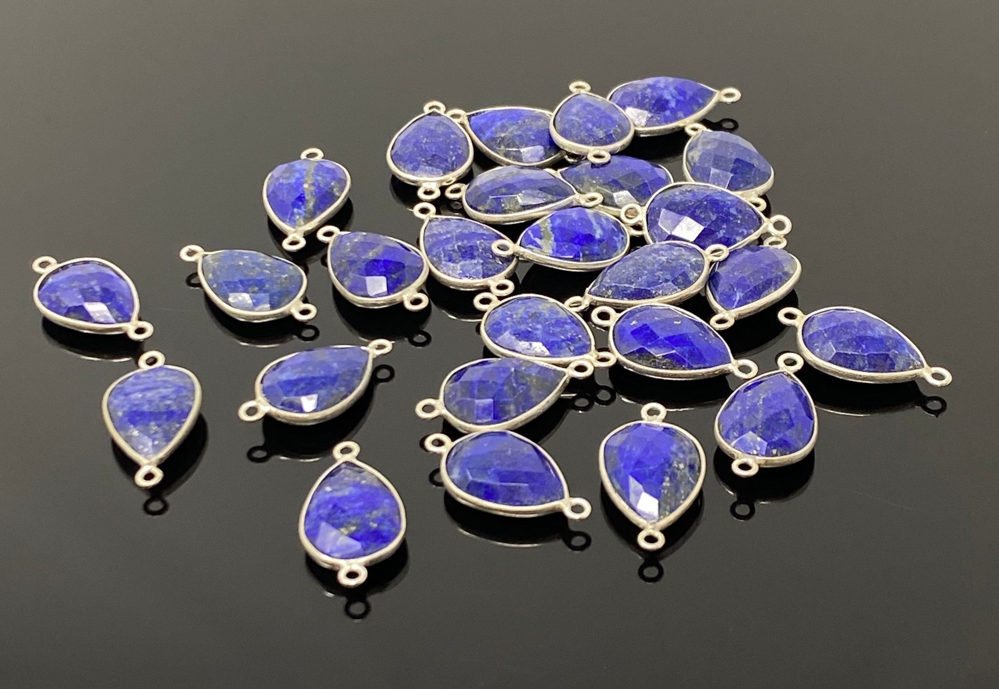 13 Pcs Lapis Lazuli Connectors, Silver Plated Lapis Lazuli Connector Links, Bulk Jewelry Findings