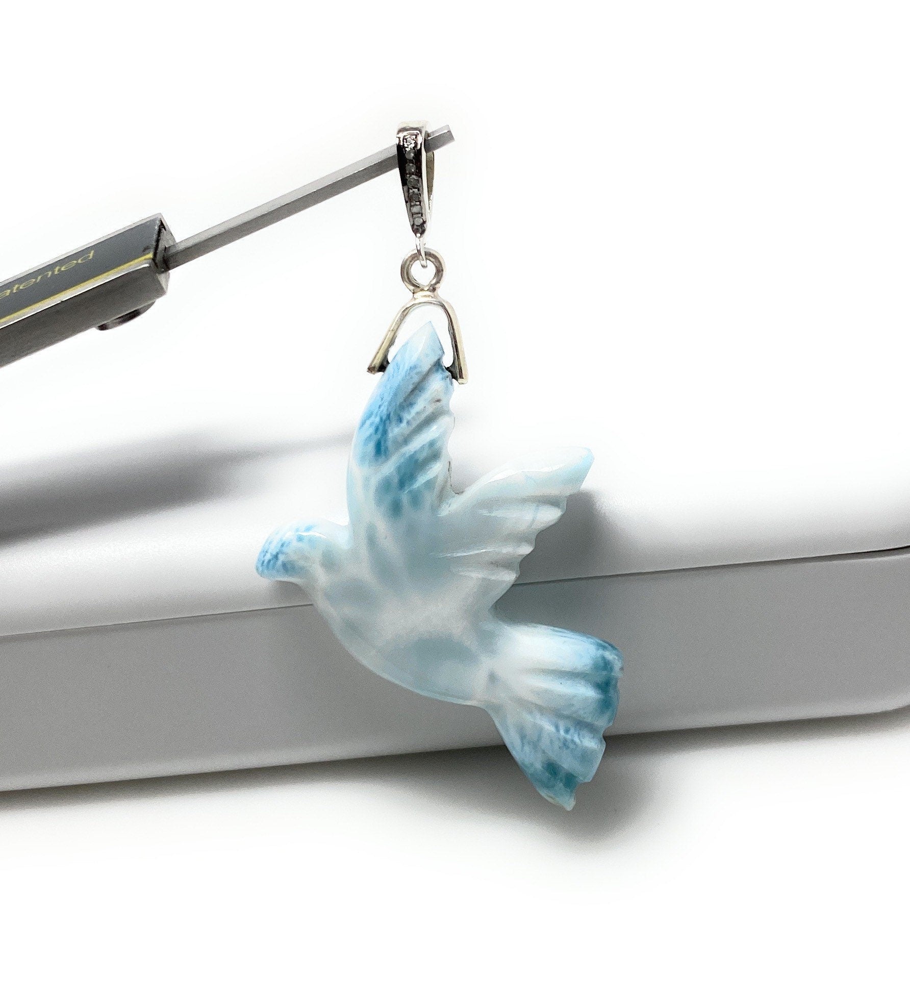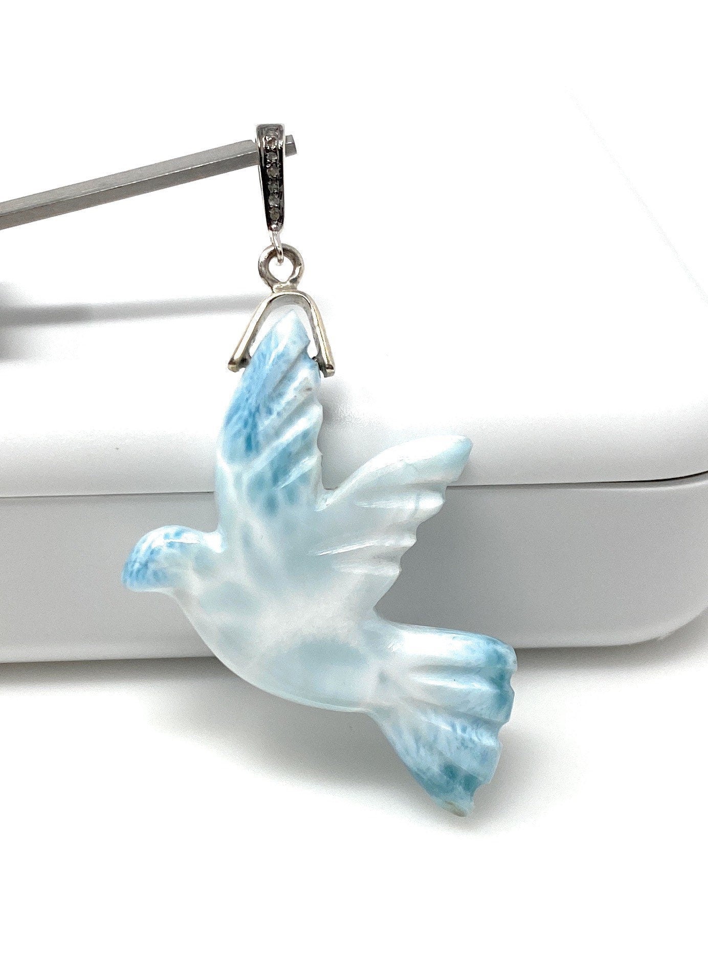 14g Rare Large Larimar Bird Pave Diamond Pendant, Silver Bohemian Jewelry, Dominican Republic Larimar Pendant, Larimar Bird Pendant