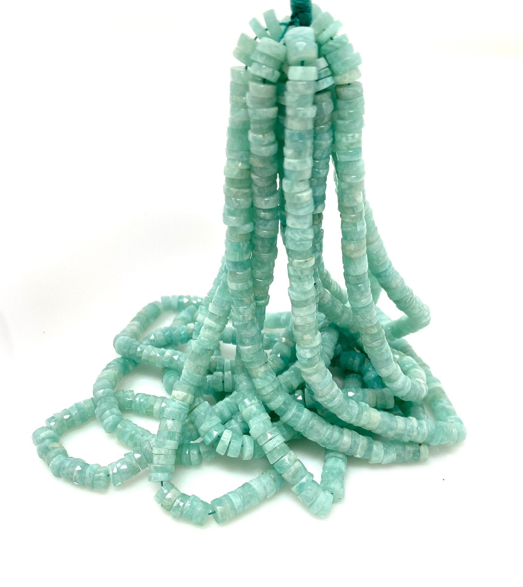 These Beautiful AAA Grade Natural Amazonite Faceted Heishi Beads are excellent for making Necklaces, Bracelets, Earrings , Anklets or any other Creative Jewelry Design.