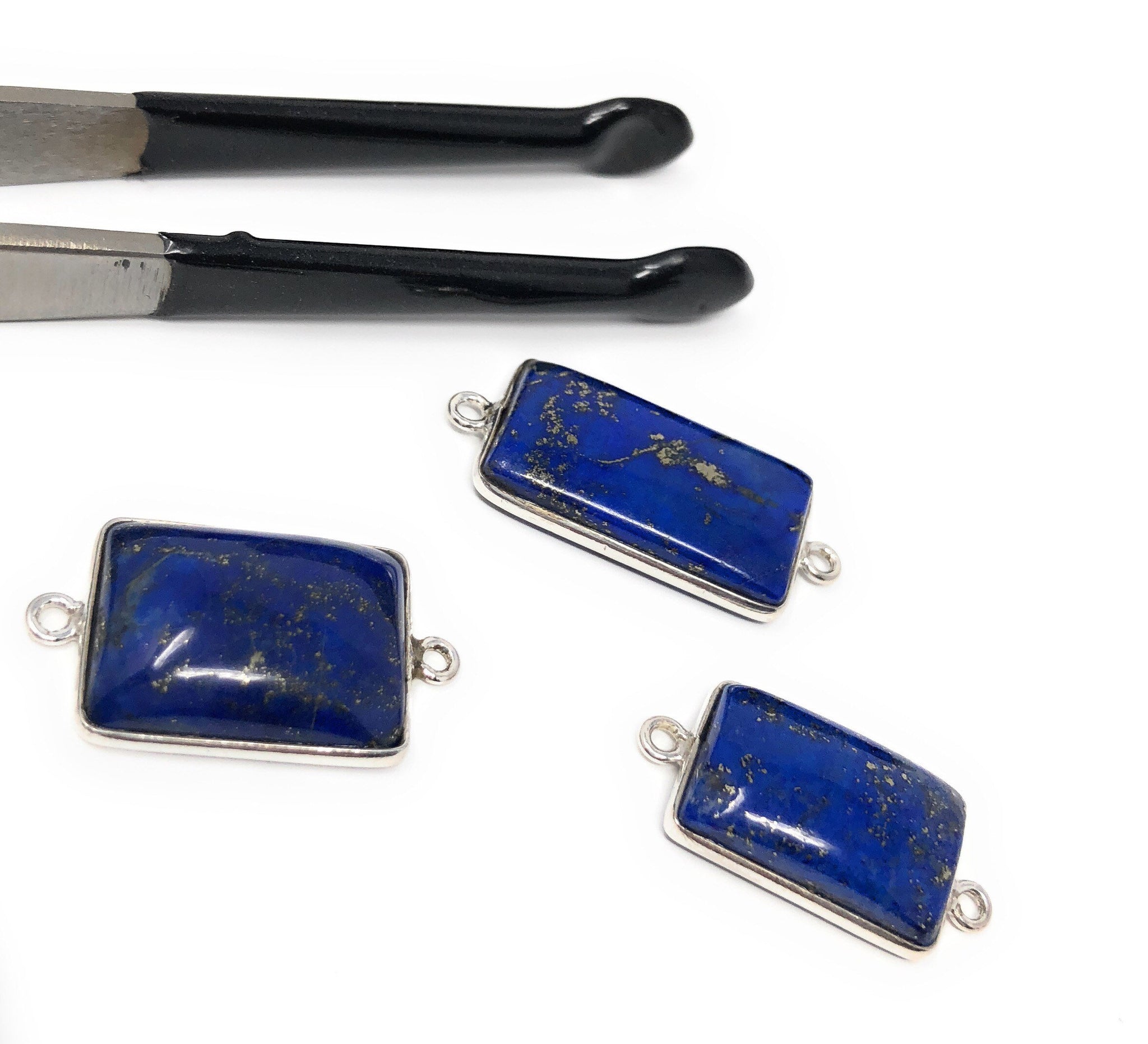 This Beautiful Bulk lot of 3 Pieces of Handmade 925 Sterling Silver Rectangle Shape Natural Smooth Polished Lapis Lazuli Gemstone Charm Connectors is an excellent choice for making any Jewelry Design. These can be used for making Charm Bracelet, Pendant Necklace or can be used to make any creative Jewelry Design.