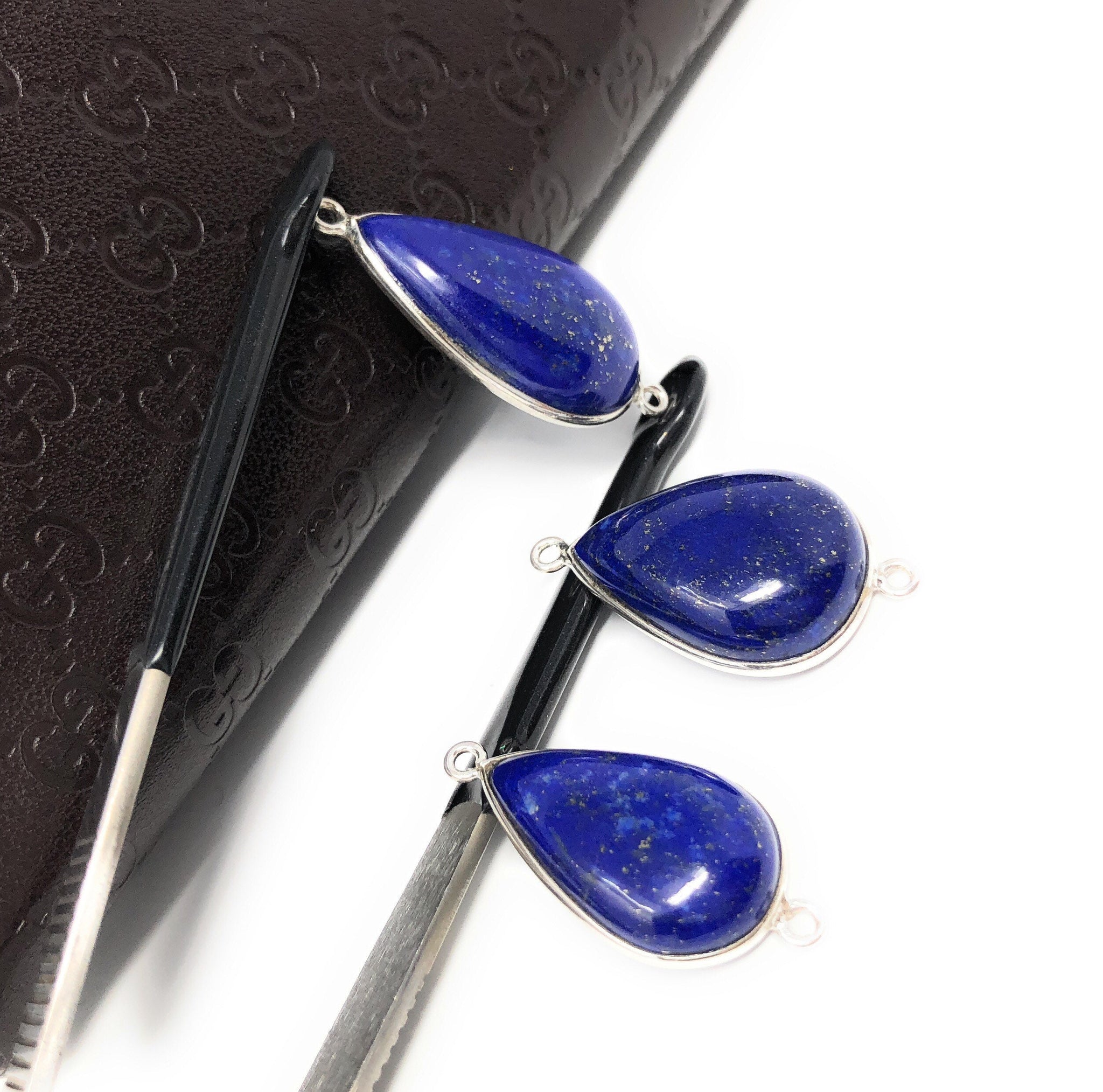 This Beautiful Bulk lot of 3 Pieces of Handmade 925 Sterling Silver Drop Shape Natural Smooth Polished Lapis Lazuli Gemstone Charm Connectors is an excellent choice for making any Jewelry Design. These can be used for making Charm Bracelet, Pendant Necklace or can be used to make any creative Jewelry Design.