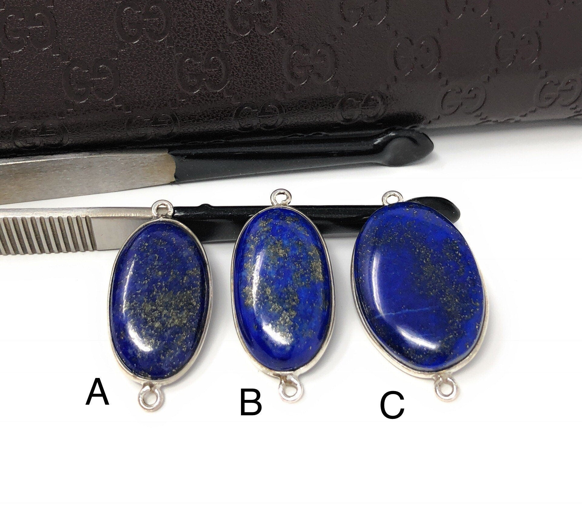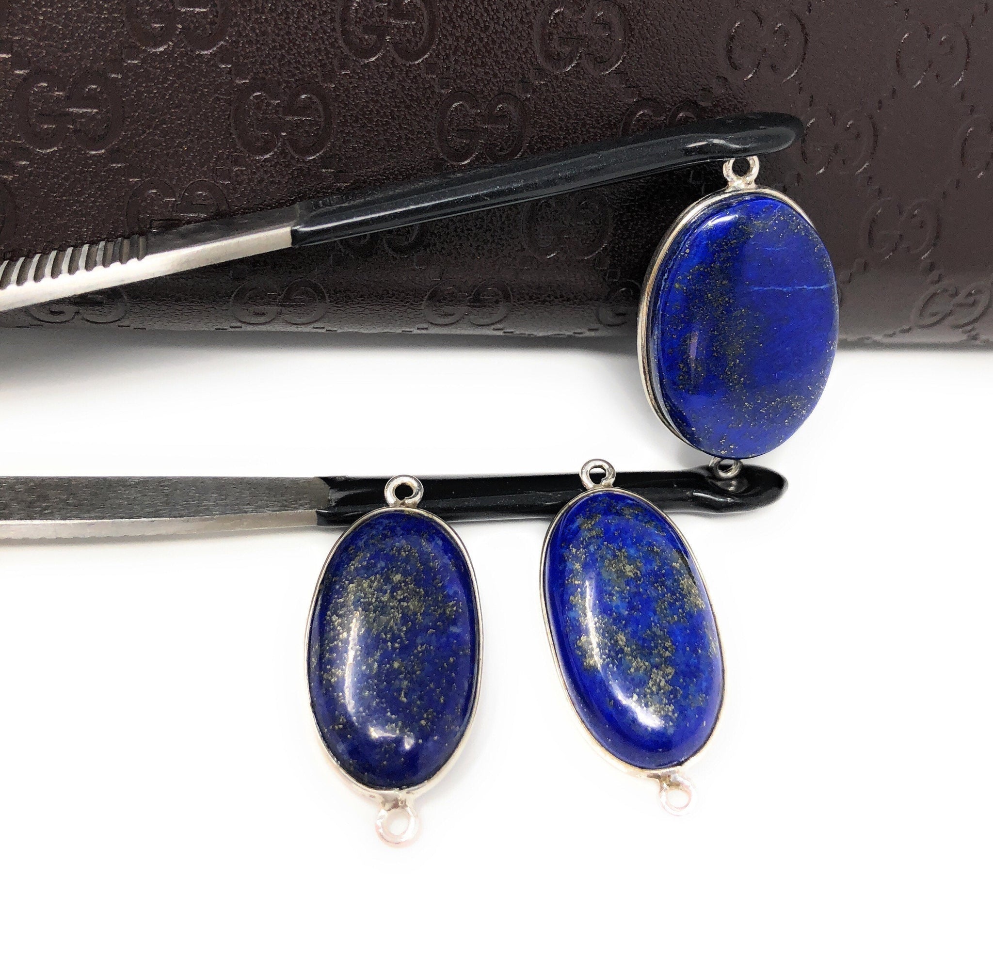 3 Pcs Lot of Sterling Silver Natural Gemstone Smooth Lapis Lazuli Bezel Set Connector Jewelry Findings for Jewelry Making at Wholesale Price.