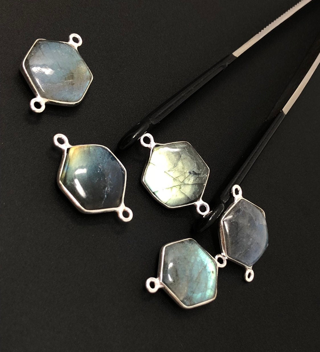 These beautiful Handmade Sterling Silver Natural Smooth Gemstone Labradorite Double Bail Hexagon Shape Connector are an excellent choice for making any Jewelry Design. It can be used for making Anklet, Bracelet, Necklace or can be used for making exclusive Jewelry Piece. It can also be used to make Gemstone Belt.