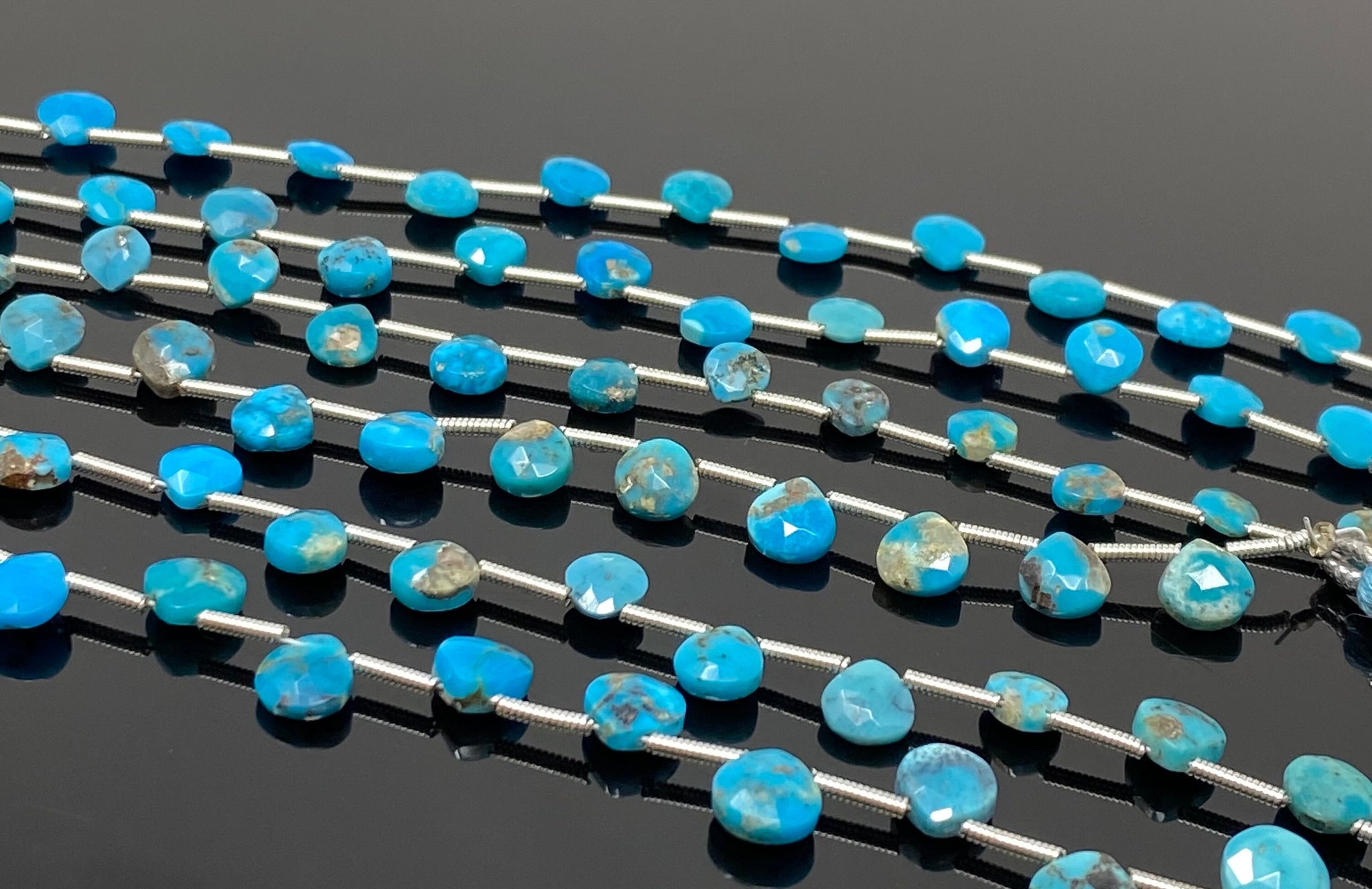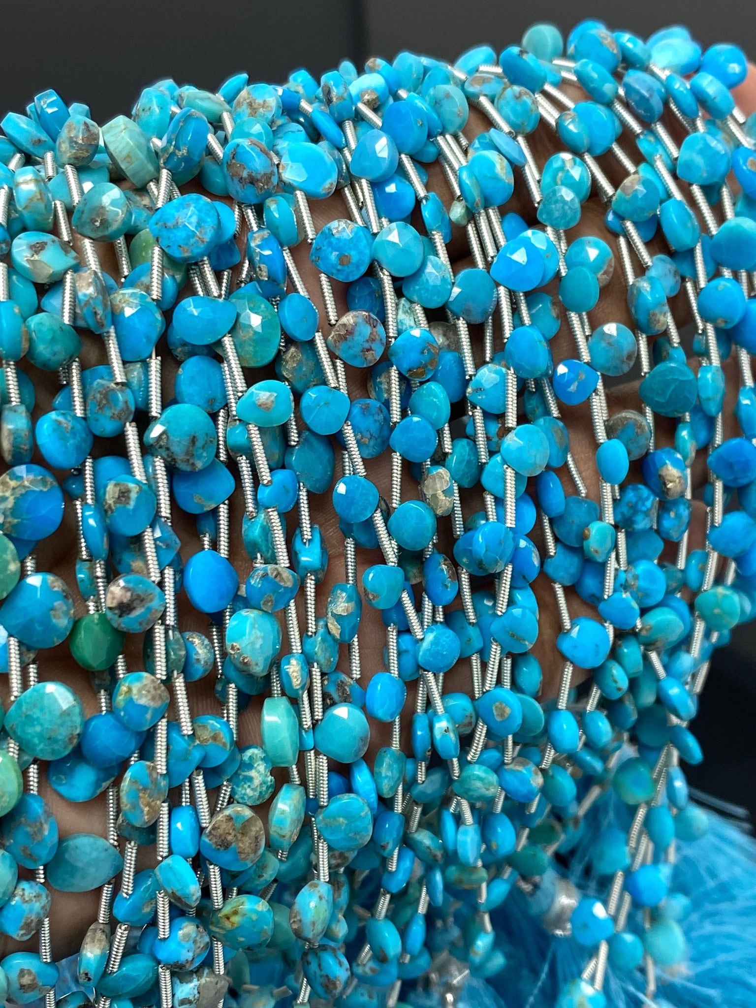 7” Turquoise Gemstone Heart Shape Beads, Arizona Turquoise Faceted Beads, Bulk Wholesale Beads