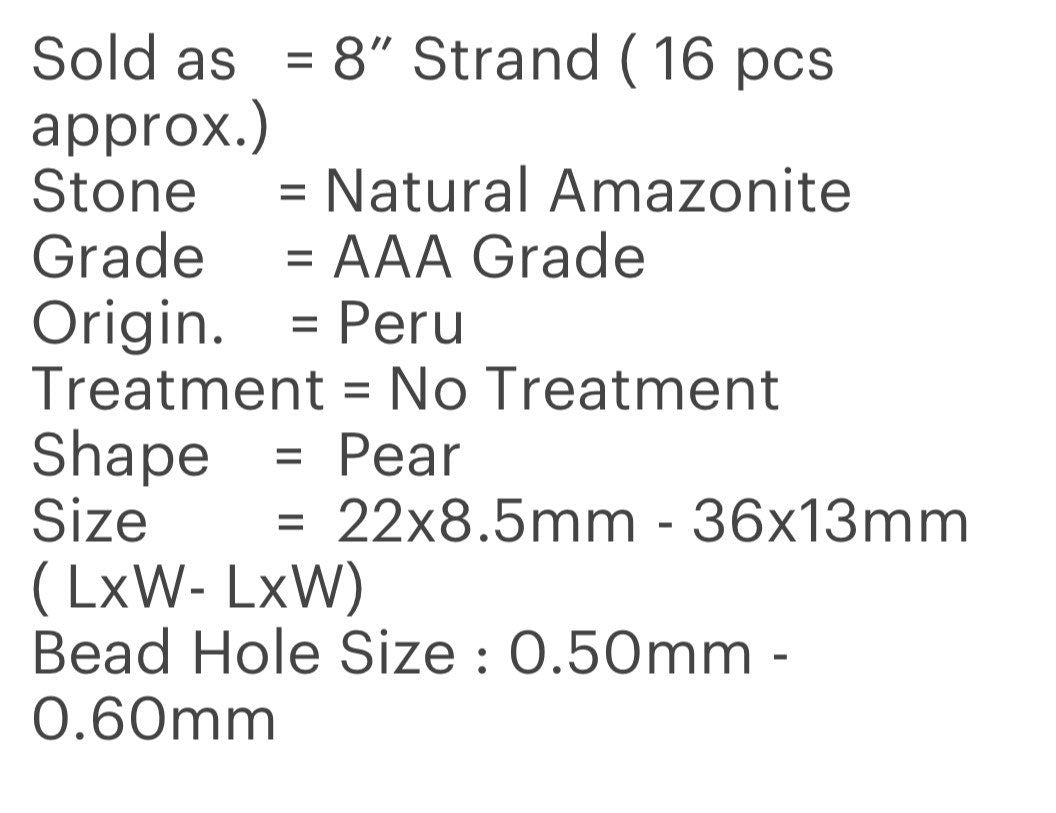 Amazonite Gemstone Beads, Amazonite Faceted Pear Briolette Beads, Jewelry Supplies, Bulk Beads, 22- 36mm, 8” Strand -16 Pcs approx..
