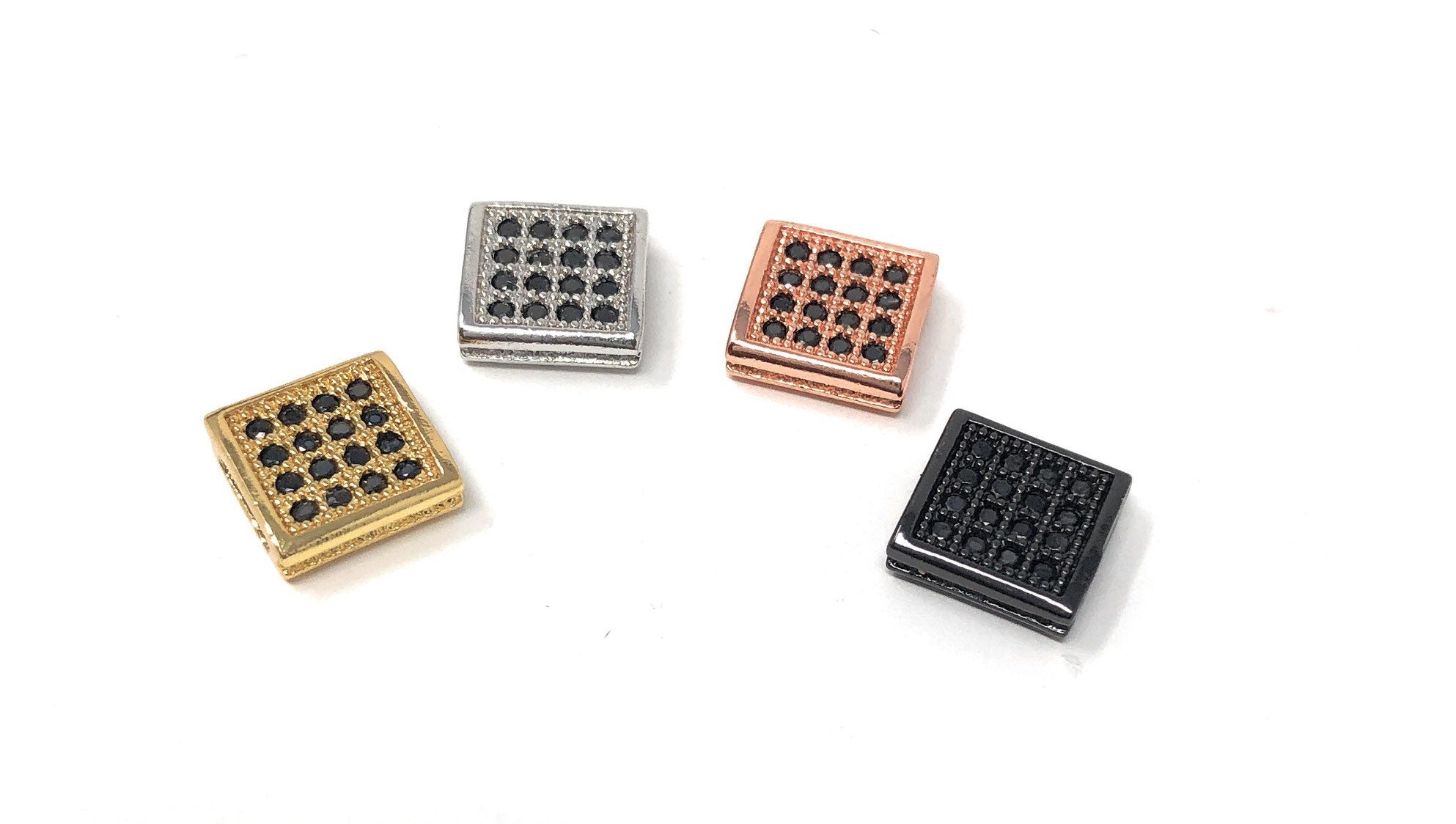 CZ Micro Pave Square Beads, Pave Beads, Spacer Beads, CZ Bulk Beads, Pave Spacer Beads, Jewelry Findings for DIY Jewelry Making, 1 Pc