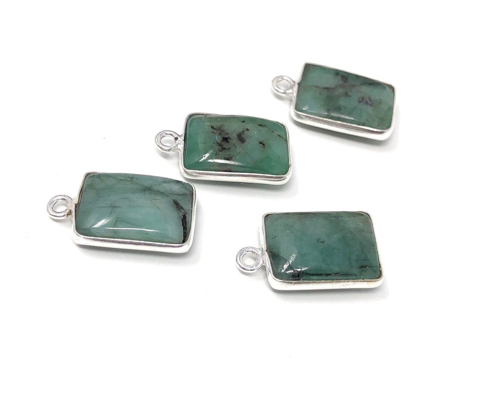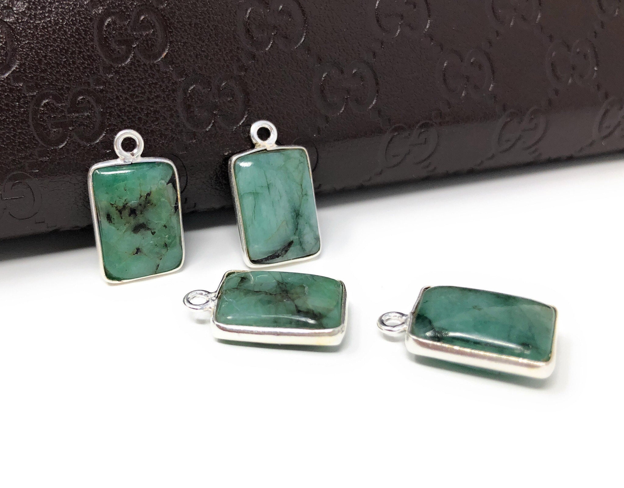 Sterling Silver Gemstone Emerald Charms Bezel Set Add a Charm Jewelry Supplies for Jewelry Making at Wholesale Price.