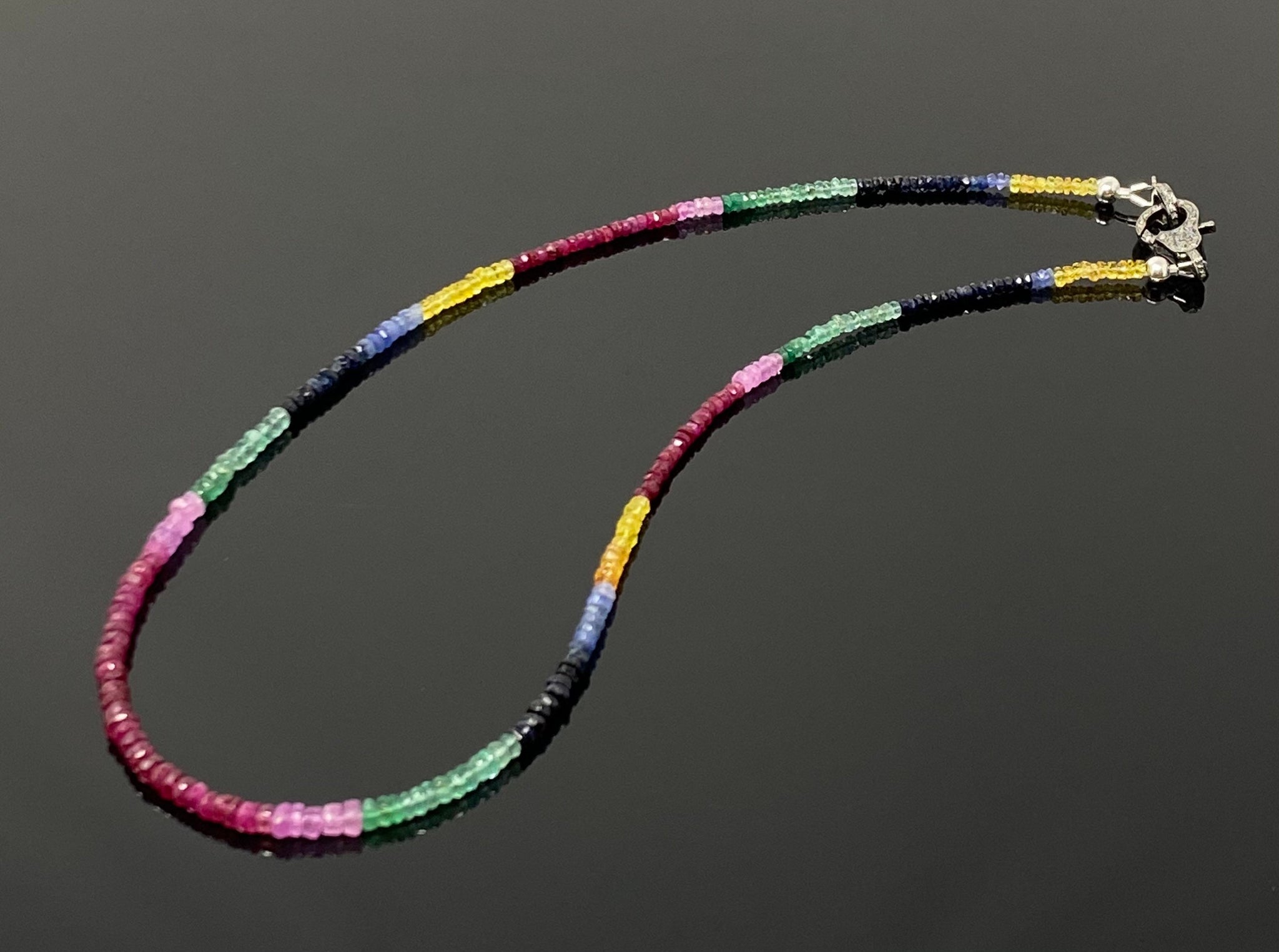 Natural Ruby, Emerald and Multi Sapphire Faceted AAA Quality Beaded Necklace.