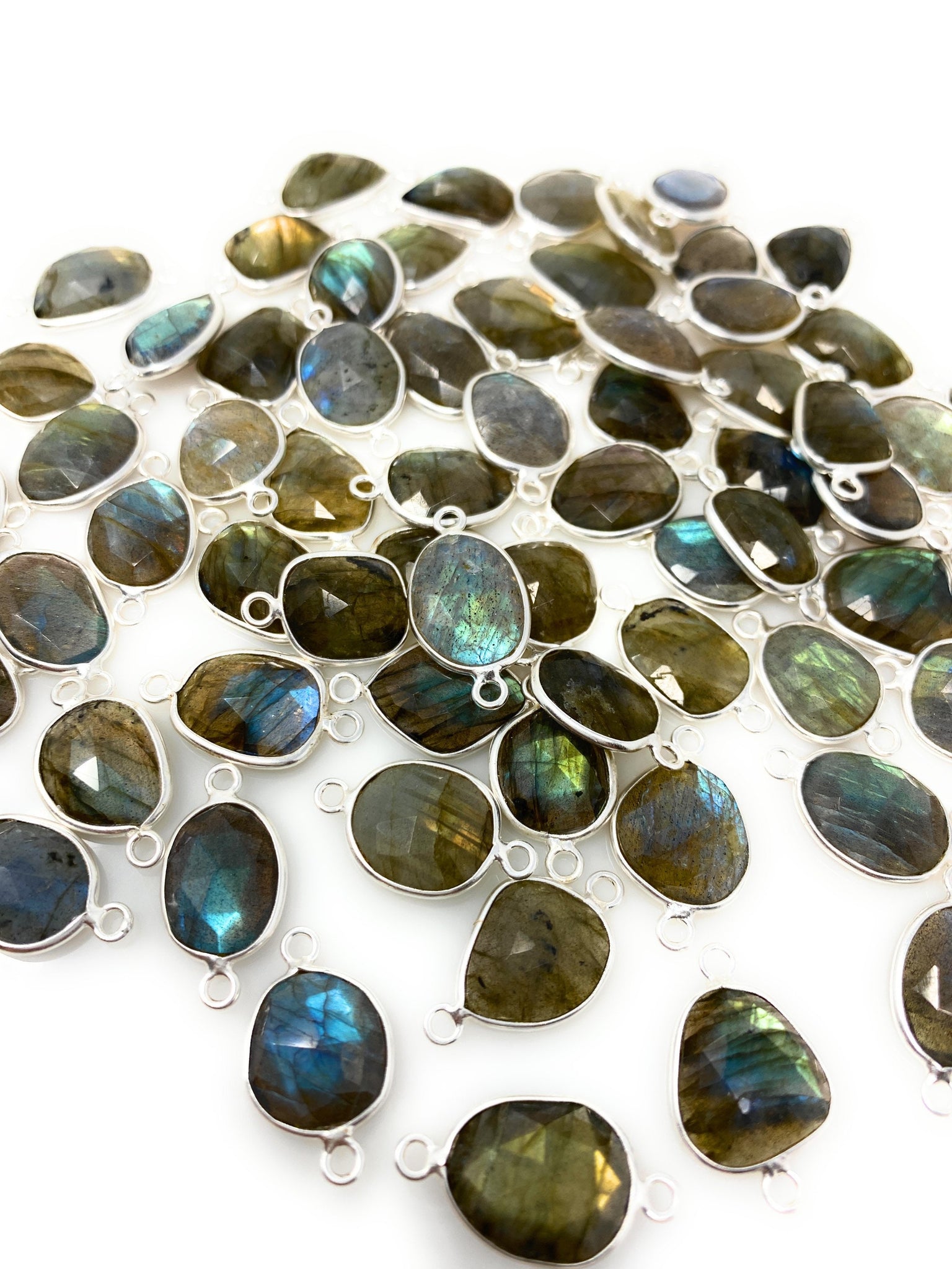 Labradorite Gemstone Bezel Connectors Sterling Silver Jewelry Supplies for Jewelry Making at Wholesale Price.
