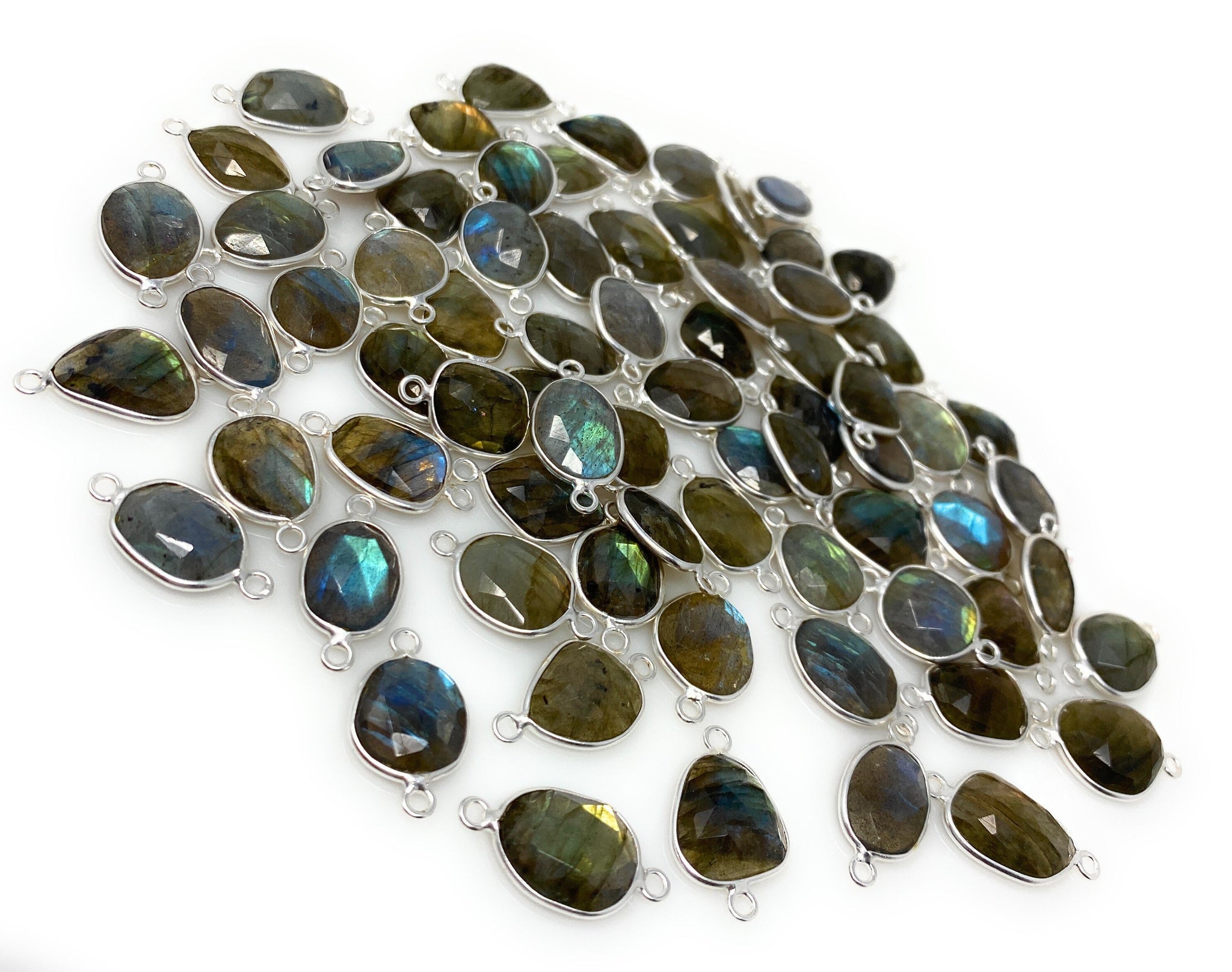 Labradorite Connectors, Gemstone Connectors, Silver Connectors, Bulk Wholesale Jewelry Supplies, 19x11mm - 22x13mm