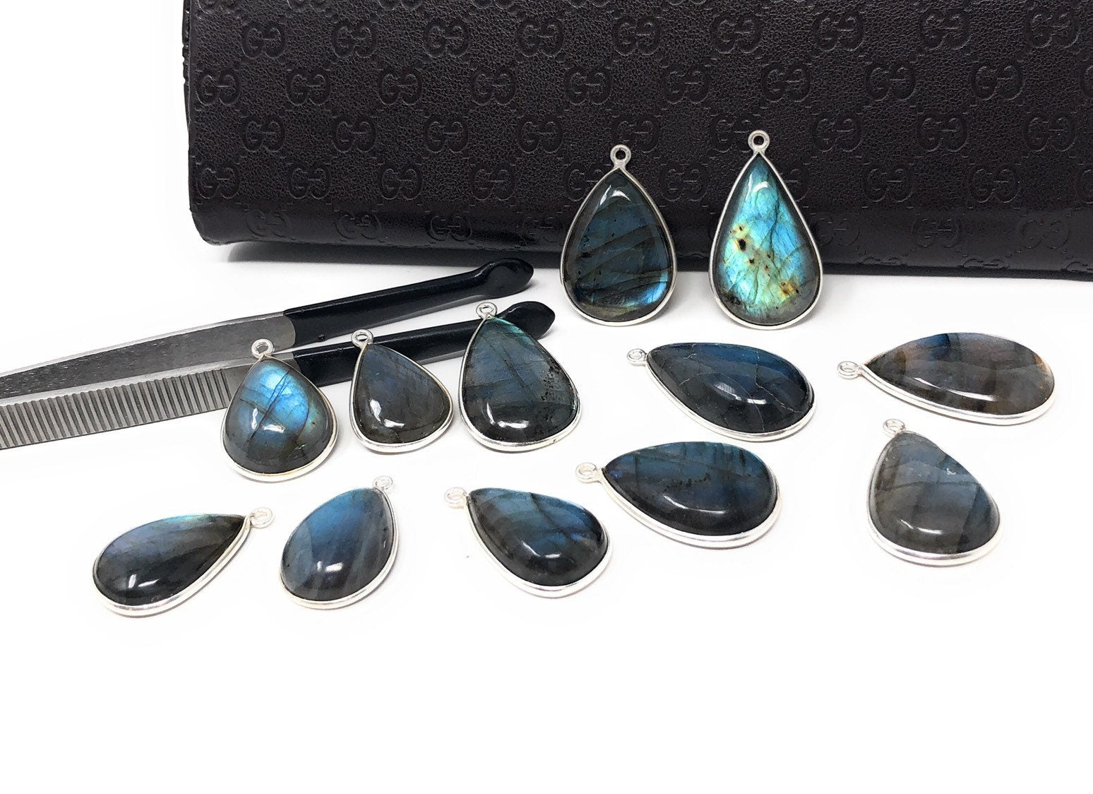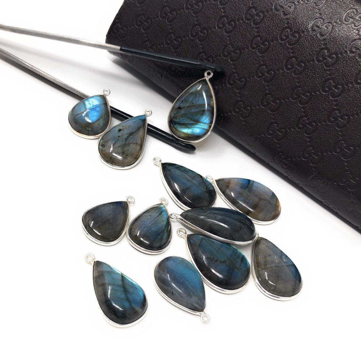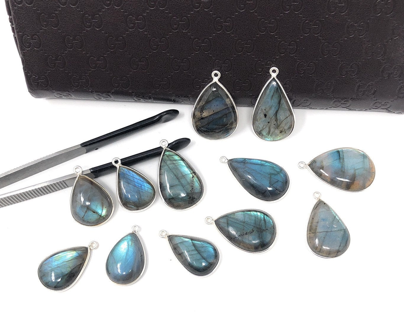 These beautiful Handmade Sterling Silver Natural Gemstone Labradorite Drop Shape Charms are an excellent choice for making any Jewelry Design.