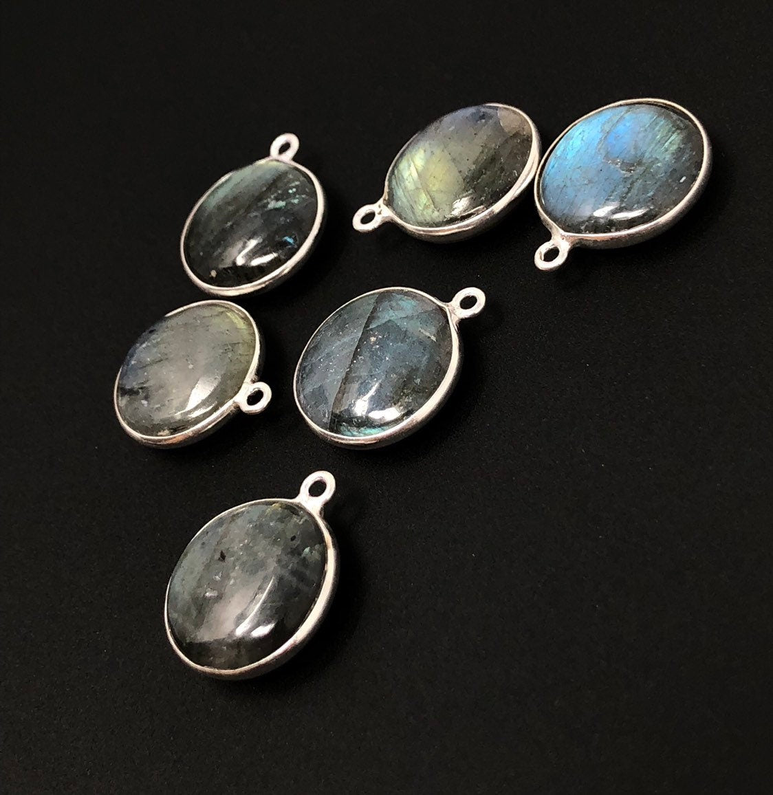 Labradorite Gemstone Charms, Sterling Silver Briolette Charms , Wholesale Jewelry Findings, Jewelry Making, Jewelry Supplies, 19.5x16mm