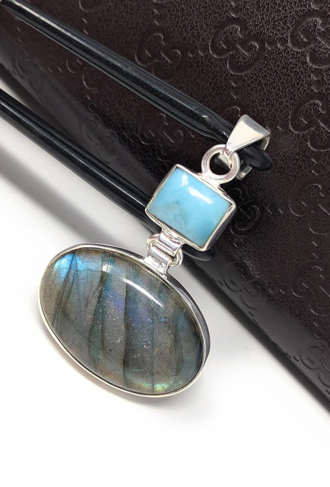 Labradorite and Larimar Gemstone Sterling Silver Pendant Jewelry at Wholesale Price.