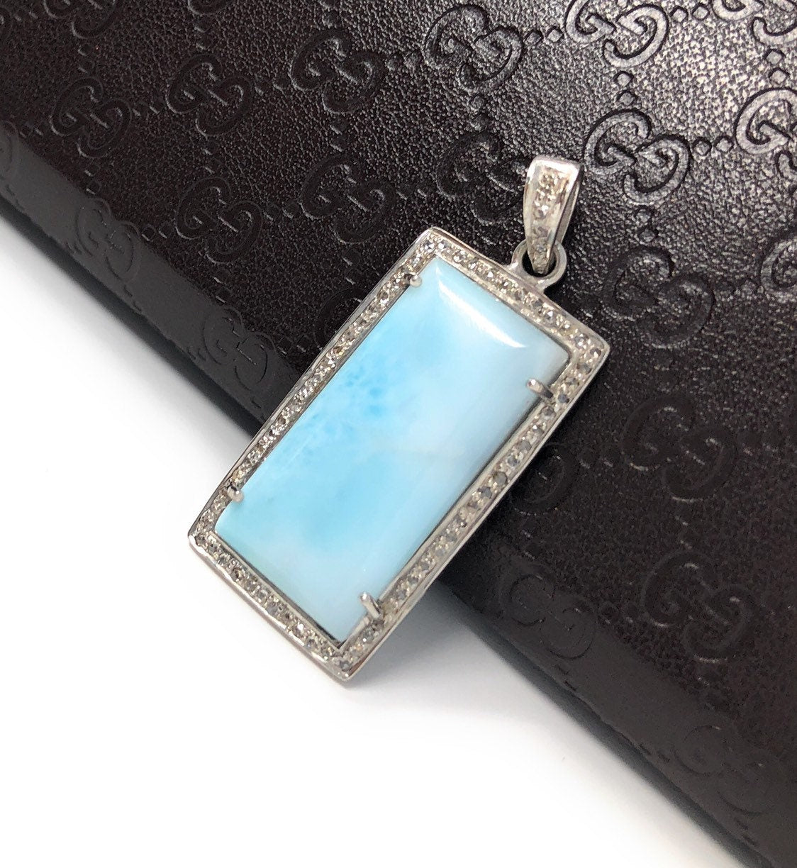 This beautiful Handmade AAA+ Grade Natural Larimar Gemstone Rectangle Shape 925 Sterling Silver Large Pave Diamond Bezel Setting Pendant is an excellent choice for any occasion and makes a great gift for the loved ones.