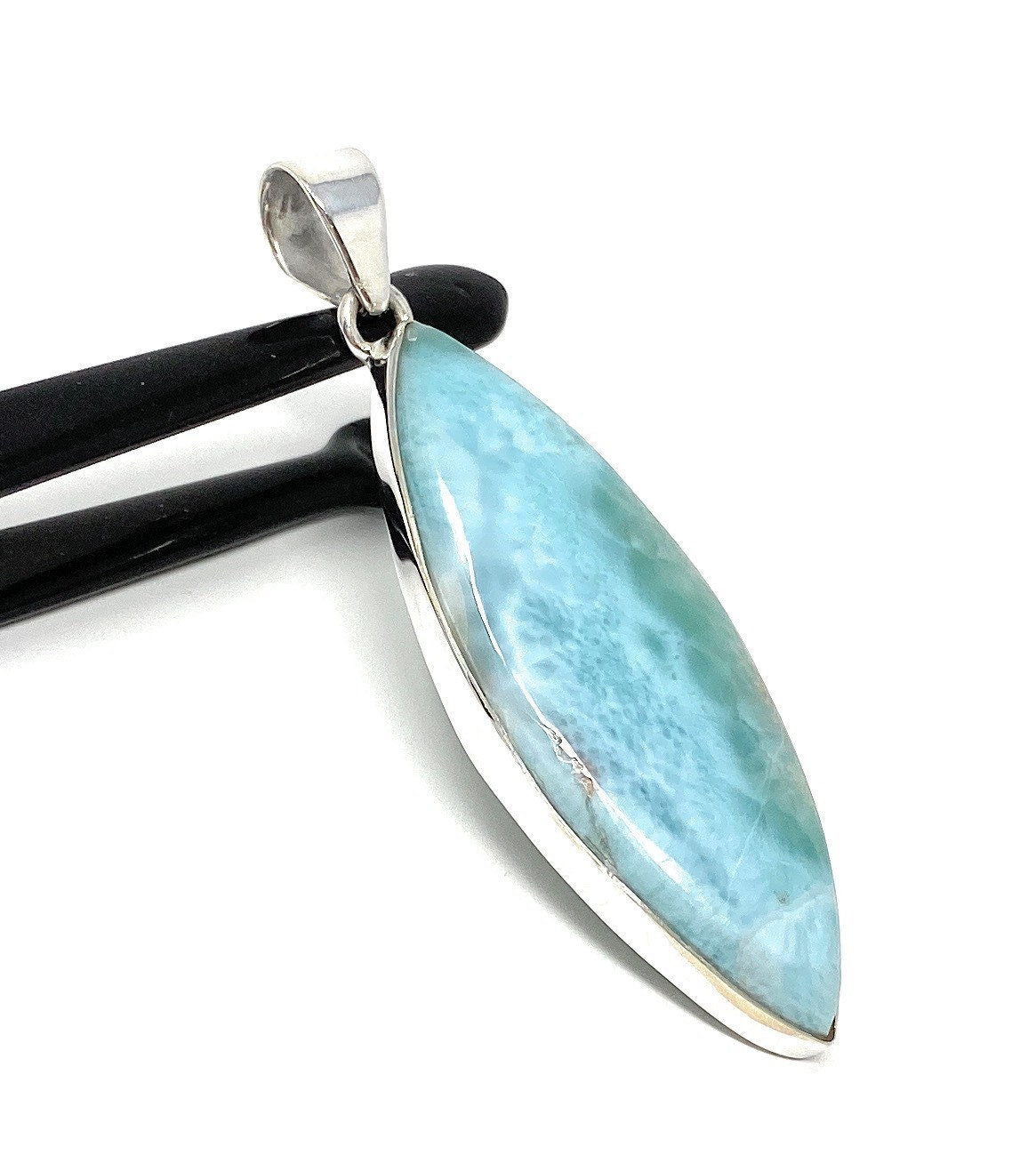 This beautiful Handmade AAA Grade Natural Larimar Gemstone Marquise Shape 925 Sterling Silver Large Pendant is an excellent choice for any occasion and makes a great gift for the loved ones.