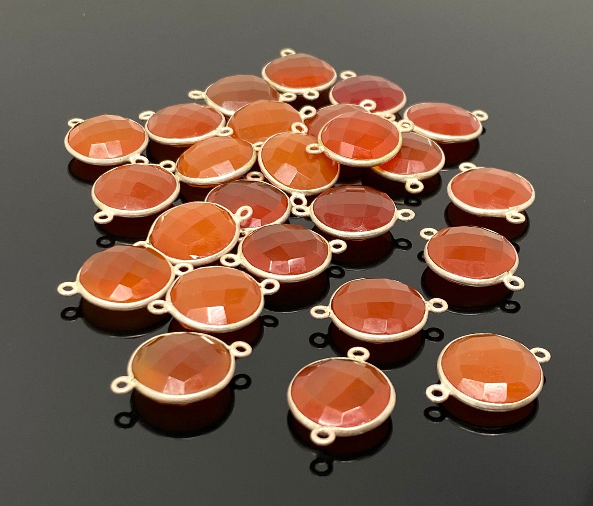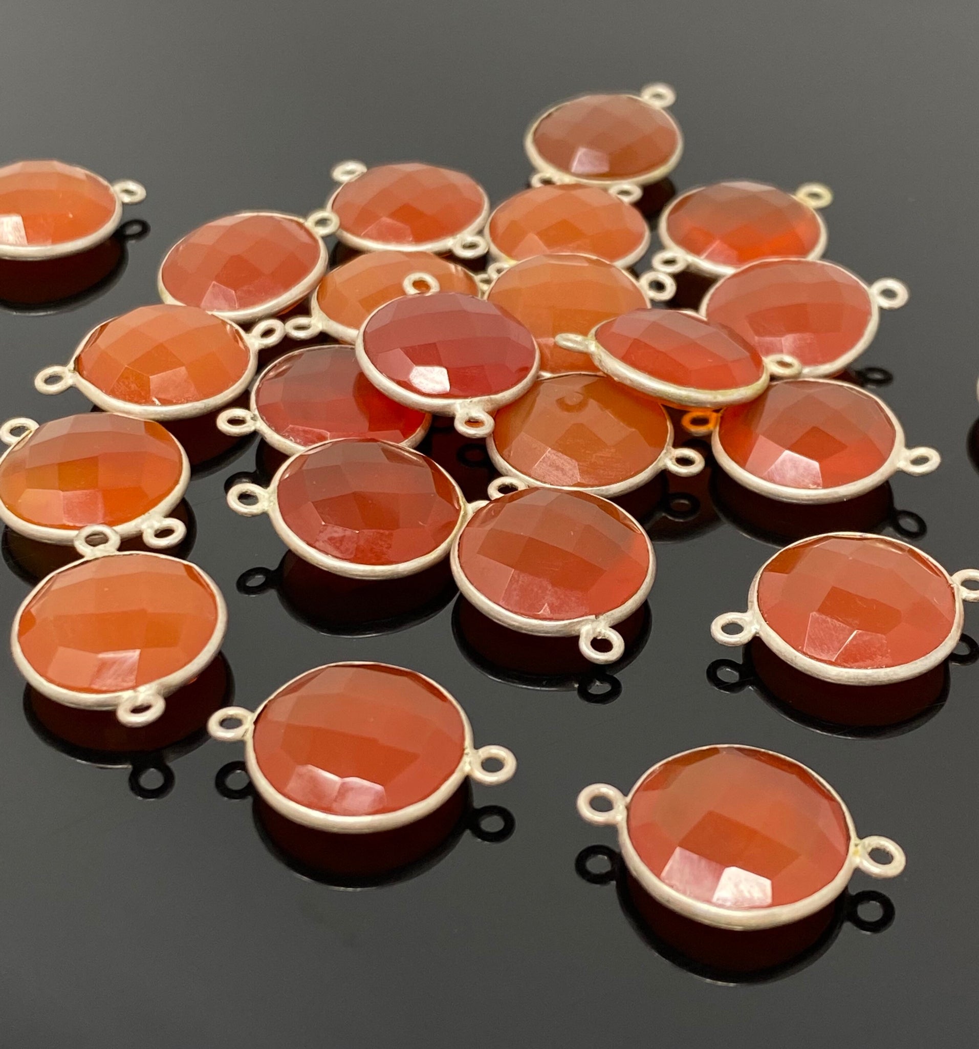Silver Plated Natural Gemstone Carnelian Bezel Set Double Sided Briolette Connectors Jewelry Findings for Jewelry Making at Wholesale Price.