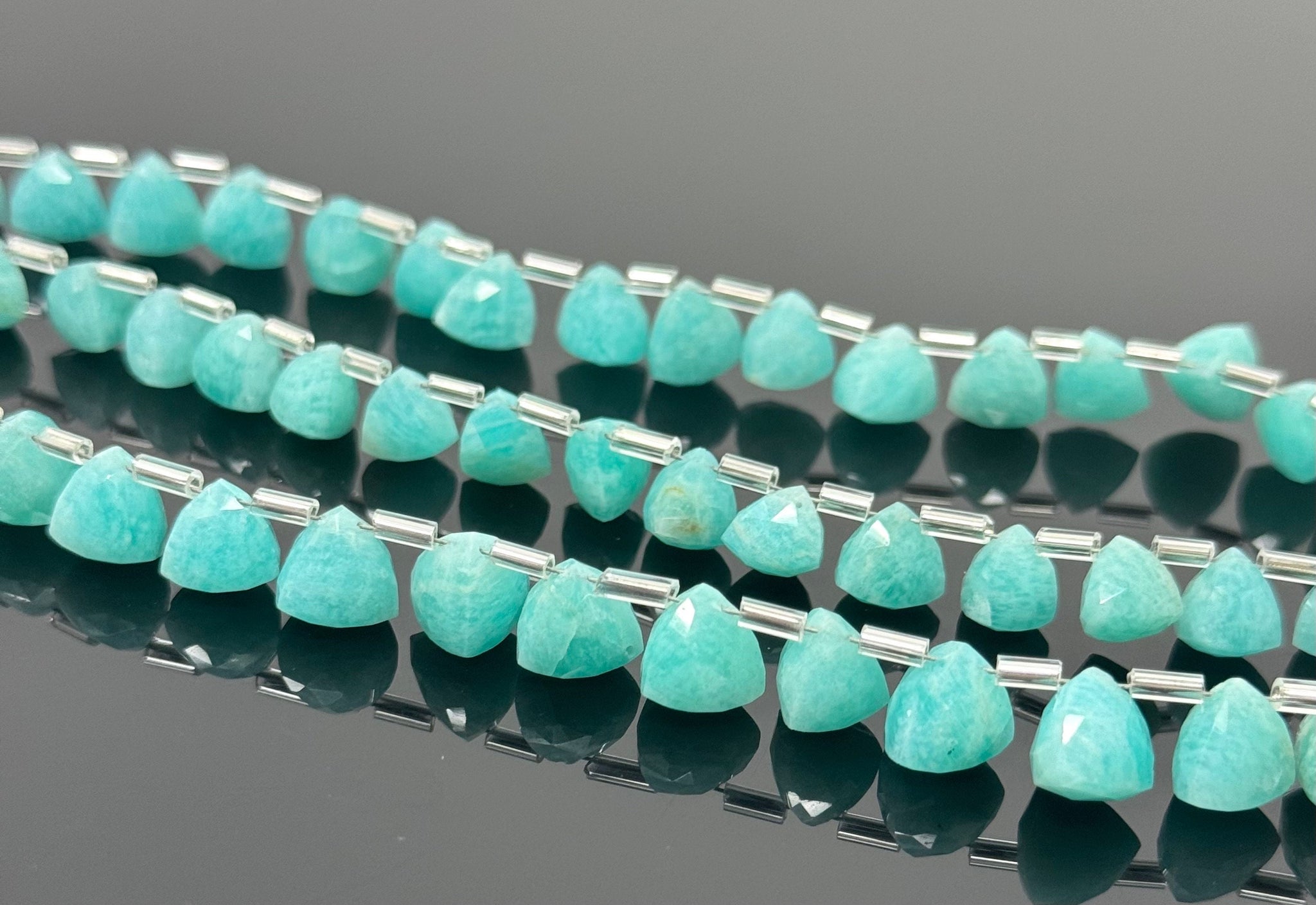 Peruvian Amazonite Trillion Shape Briolette Gemstone Beads, Wholesale Bulk Beads, Jewelry Supplies for DIY Jewelry, 8mm-9mm, 8.5" Strand