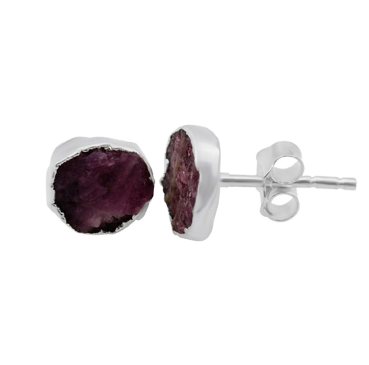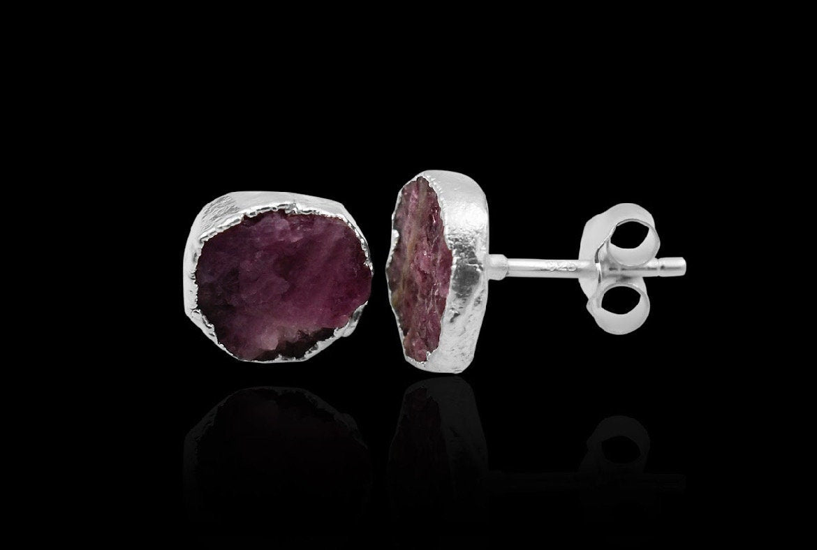 Raw Pink Tourmaline Stud Earrings, Rough Gemstone Electroplated Earrings, Healing Crystal Rough Gemstone Studs, Tourmaline Jewelry