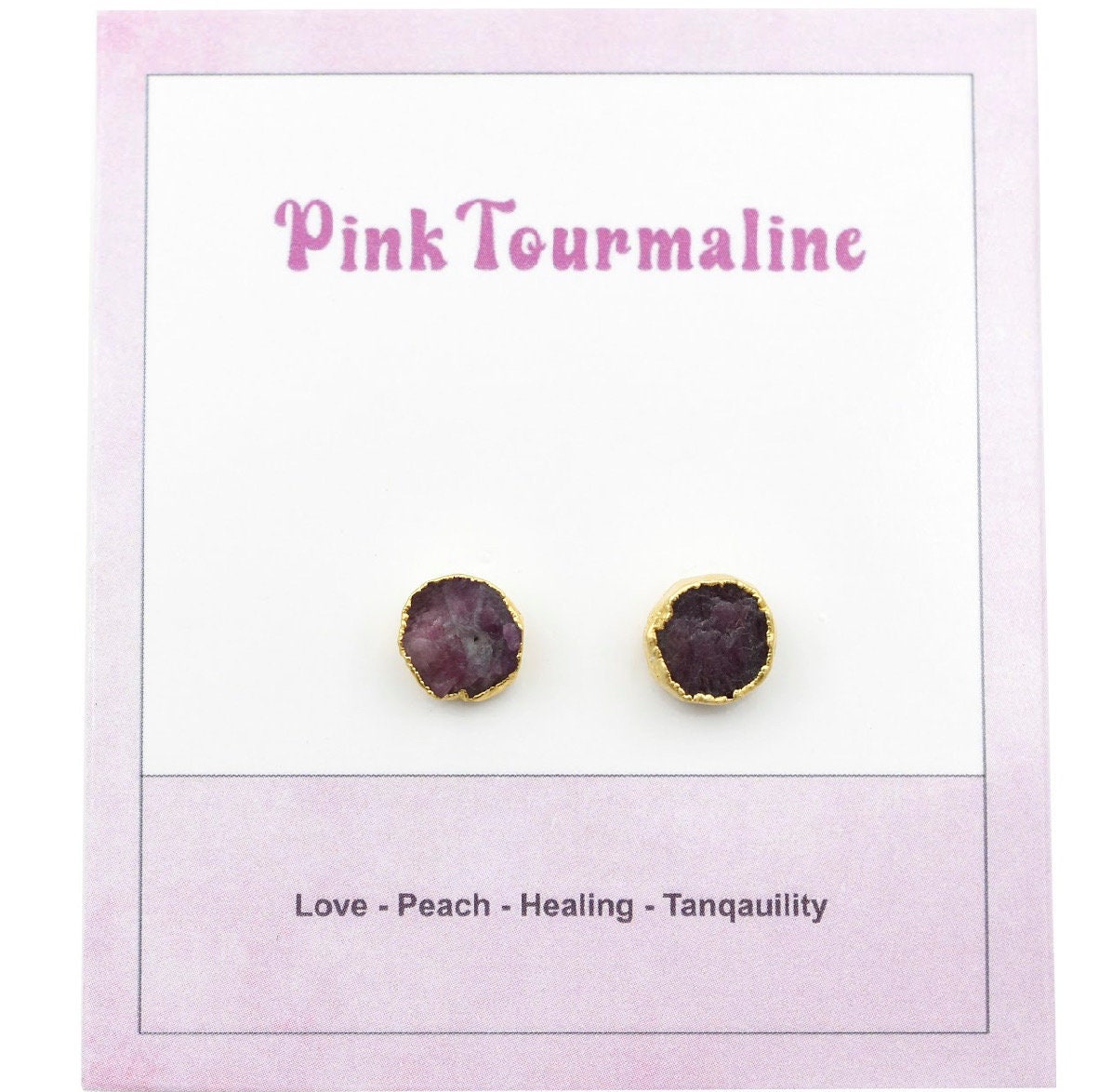 Raw Pink Tourmaline Healing Crystal Stud Earrings at Wholesale Price
