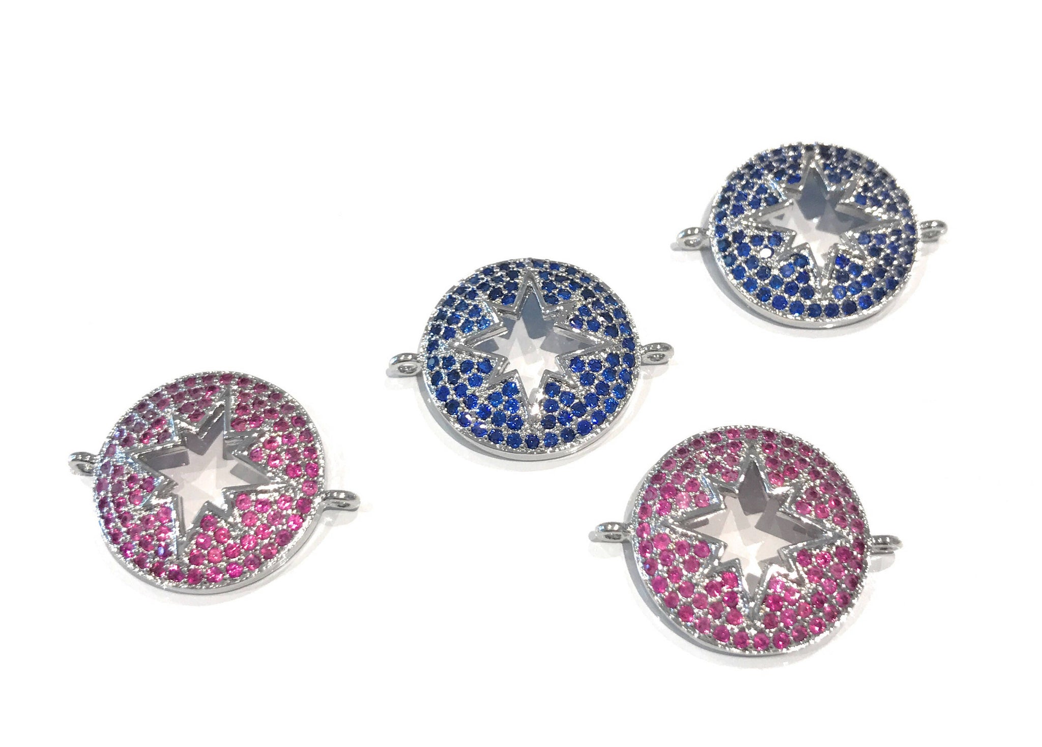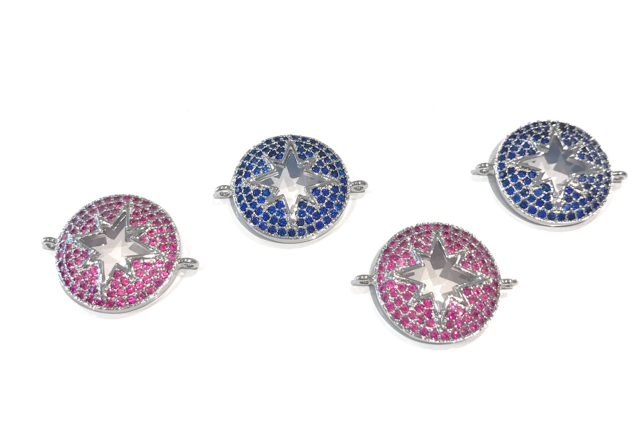 This Beautiful Platinum Plated CZ Micro Pave Star Connector in Fancy Camellia and Blue Color is an excellent choice for making Bracelets, Necklaces or any Creative Jewelry Piece.