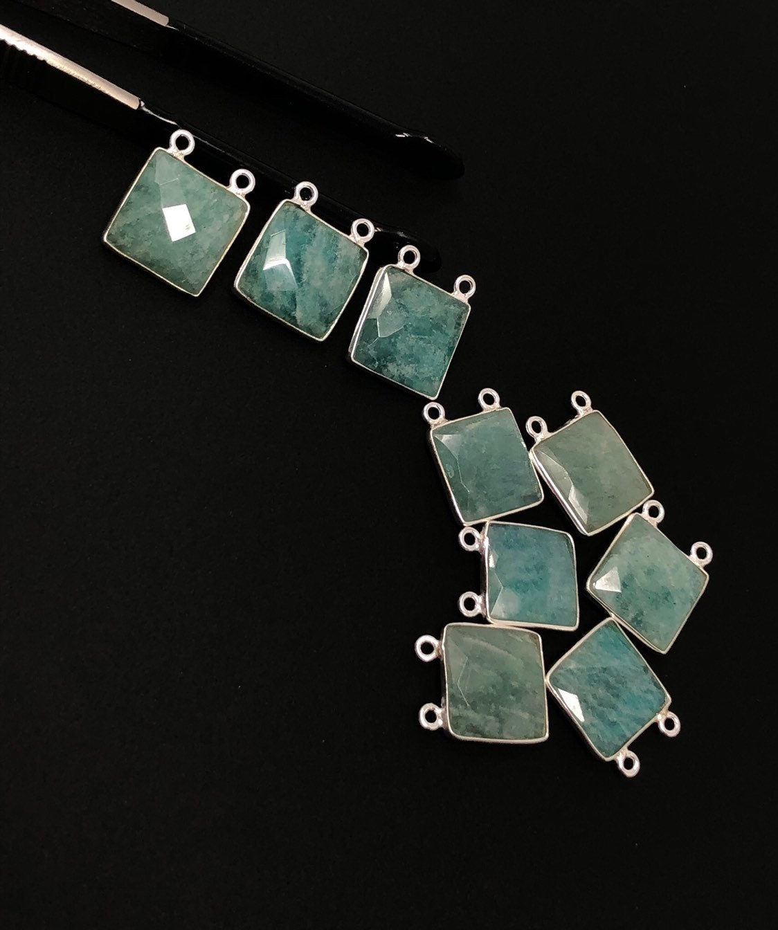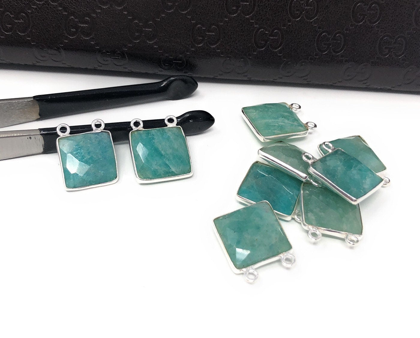 Sterling Silver Amazonite Gemstone Connector, Bulk Charms, Jewelry Supplies for Jewelry Making, Wholesale Jewelry Findings, 1 Pc